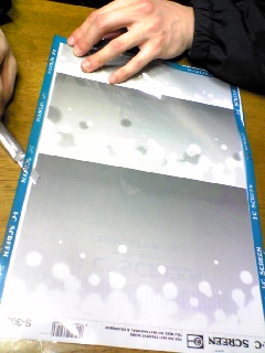 上の台紙と袋が重なった部分をホッチキスでとめ