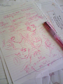 いつも、落書きのような事をしながらプロットを考えるのですが、ペンで書いたほうがはかどる事が最近分かりました!